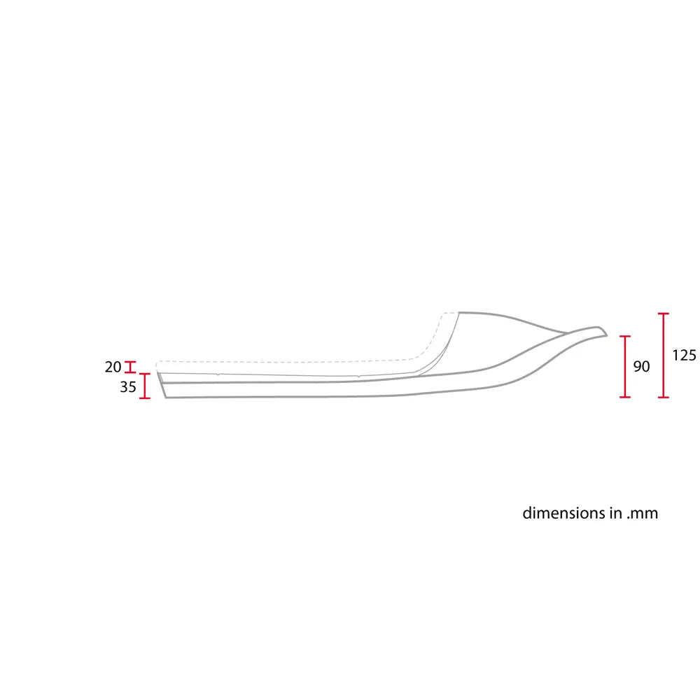 En flat track-sadel med tydlig racingkänsla och inspiration från Honda Bol d'Or-eran. Bakdelen har ett klassiskt tävlingsstuk som verkligen sätter tonen i bygget. Du kan välja modellen med eller utan nummerplåtar på sidorna beroende på om du vill ha ett mer avskalat uttryck eller gå all in på race-looken. Den universella designen gör den till ett bra val i många olika typer av custombyggen.
