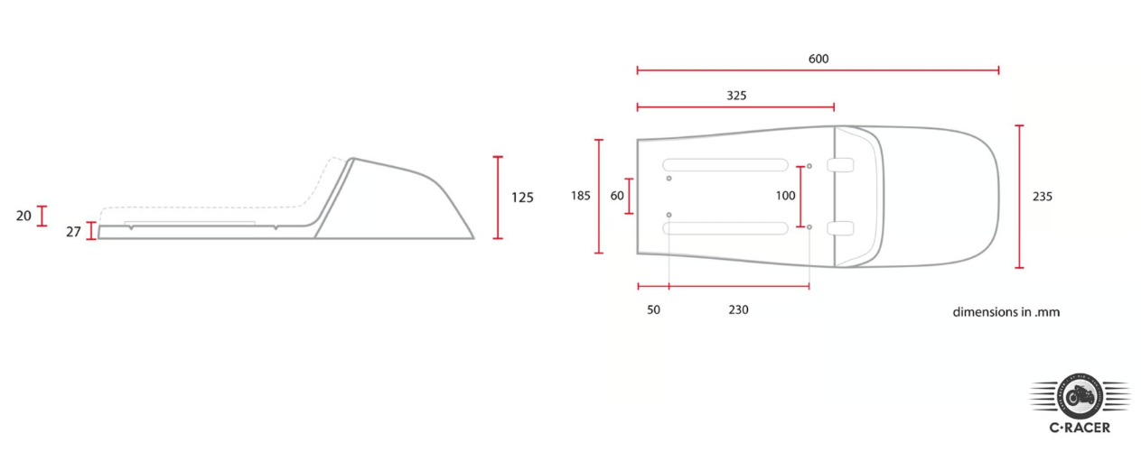 En klassisk café racer-sadel med rätt känsla och proportioner. Formen är tight och stilren, och hela sadeln är klädd i syntetläder vilket ger ett snyggt och enhetligt intryck. Den ger hojen ett mer genomarbetat och tidstypiskt uttryck utan att ta över helheten. Den universella passformen gör den till ett bra val för många olika cafébyggen.