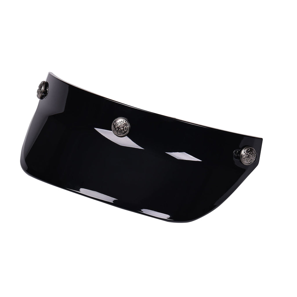 Denna hjälmskärm ger en öppen hjälm en riktig old school-look samtidigt som den skyddar ögonen mot solen under ljusa sommardagar. Den är tillverkad av tåligt polykarbonat och fästs på några sekunder, så du kan sätta på och ta av den utan krångel. En enkel detalj, men den förändrar hela hjälmens utseende.