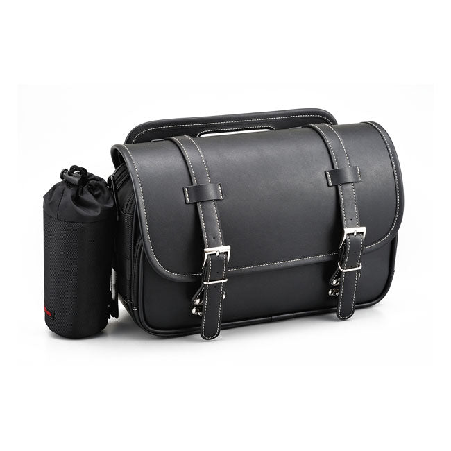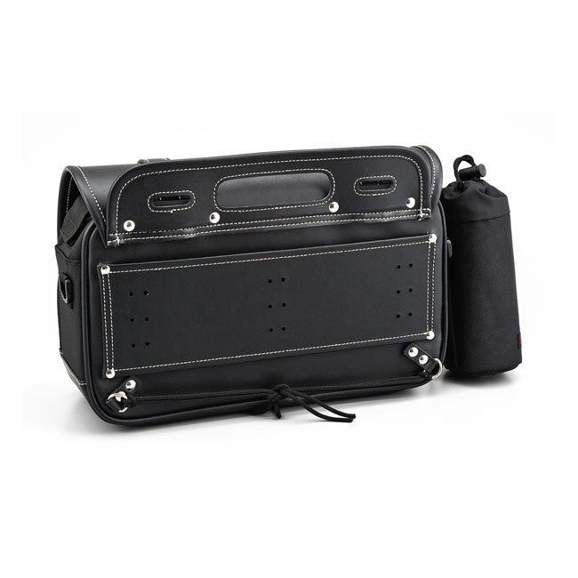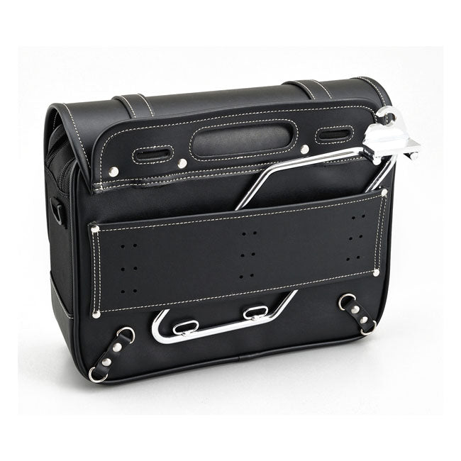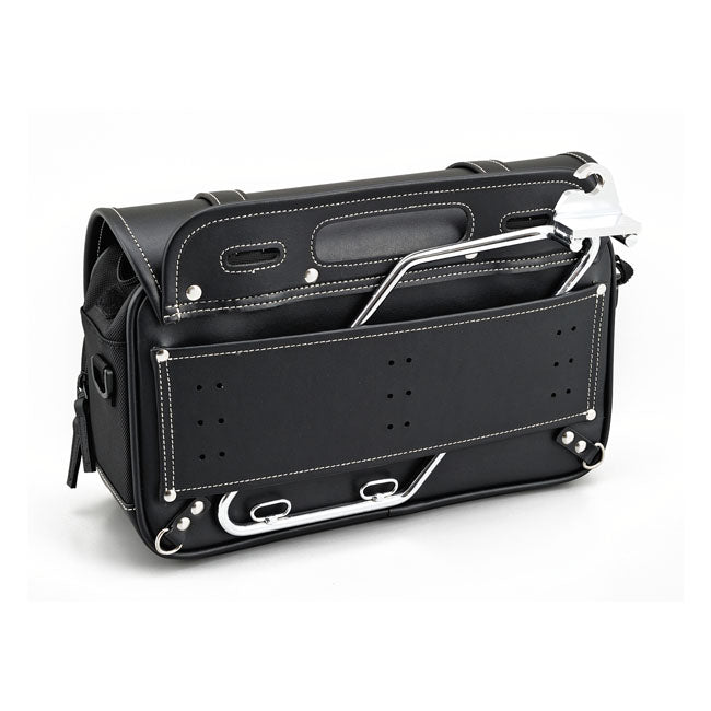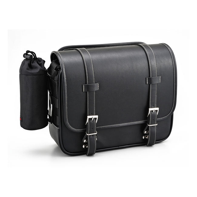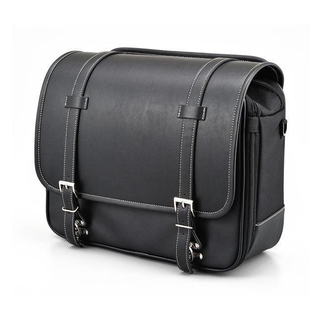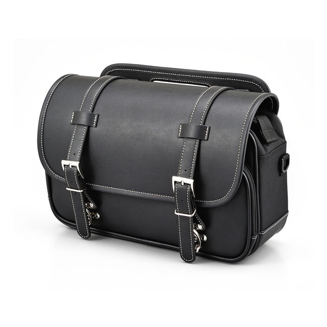 Mångsidig sidoväska som kan monteras på både vänster och höger sida av motorcykeln. Väskan har flera monteringsmöjligheter på baksidan och levereras med läder- och nylonremmar för enkel montering. Den förstärkta konstruktionen gör att väskan behåller formen även när den är tom, och stängningen sker med snabbspännen och justerbara remmar.