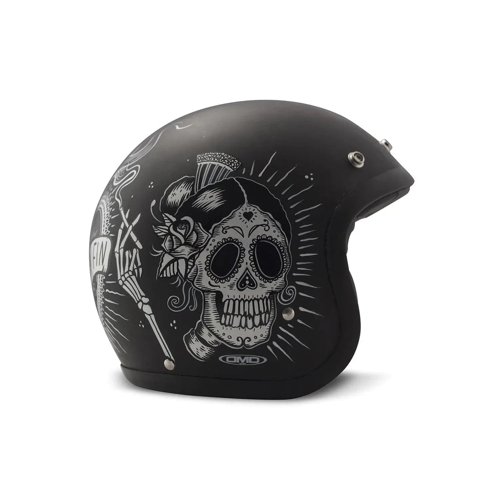 Omfamna fusionen av klassisk stil och modern funktionalitet med DMD's samling öppna motorcykelhjälmar, en hyllning till den ikoniska 70-talsdesignen. Hjälmen är ECE 22.06 godkänd och finns i tre storlekar. Perfekt blandning av vintagecharm med modern säkerhet och komfort.