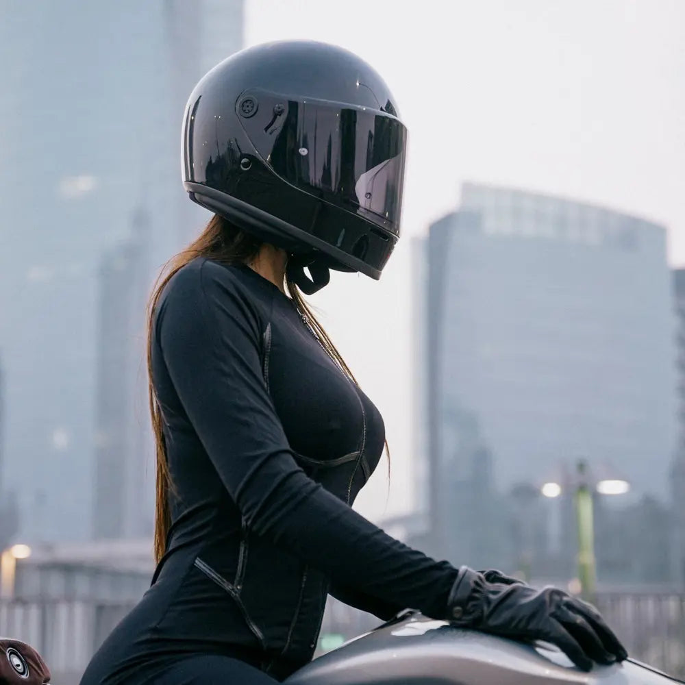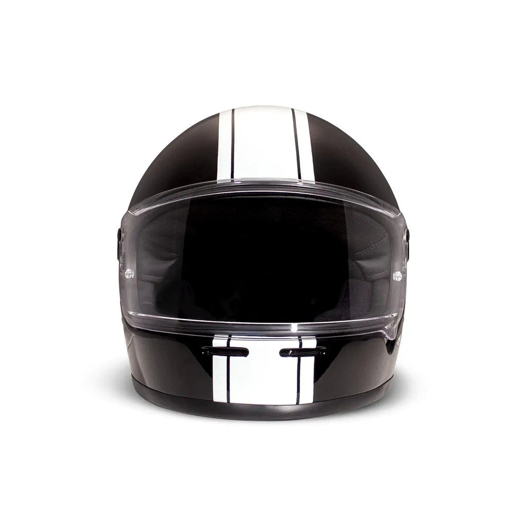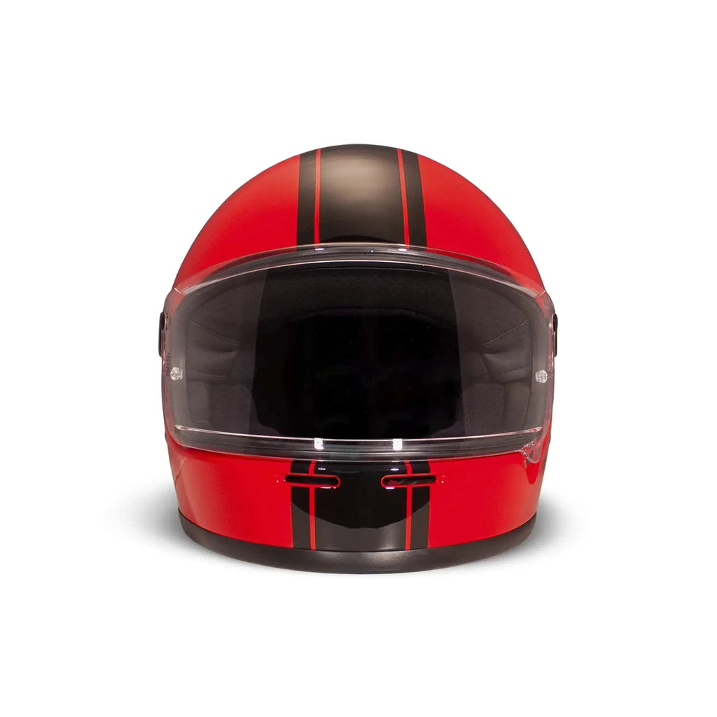 Möt den senaste innovationen inom hjälmdesign - DMD Rivale-hjälmen. Som den nyaste medlemmen i DMD-familjen sticker Rivale ut med sin strömlinjeformade design. Hjälmen är tillverkad av en ny trekomponentsfiber och har en imponerande kompakt form utan att kompromissa med moderna säkerhetsstandarder och komfort. Den här integralhjälmen handlar inte bara om skydd - den är en hyllning till motorsportens historia och blandar nostalgi med toppmodern teknik. Den är utrustad med ett avtagbart och tvättbart foder, ett vadderat hakband med dubbla D-ringar och är helt ECE-godkänd, vilket garanterar både säkerhet och stil på vägen.