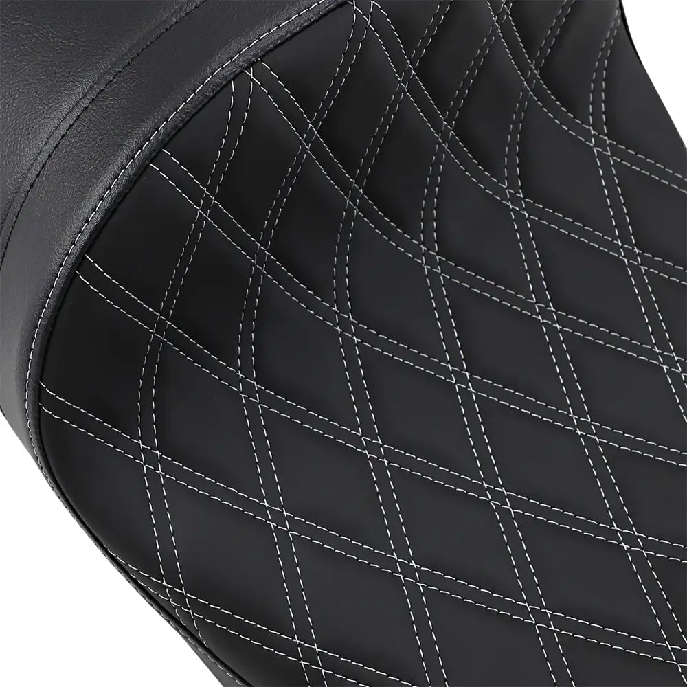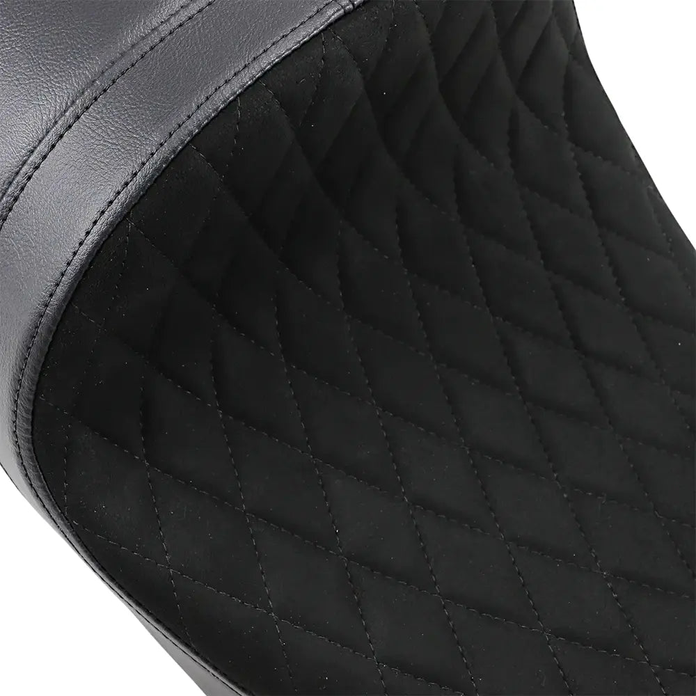 - Sadeln flyttar föraren 76 mm (3") framåt jämfört med vanliga Low Profile Solo-sadeln, och 25 mm (1") framåt jämfört med OEM Street Glide eller Road Glide-sadel