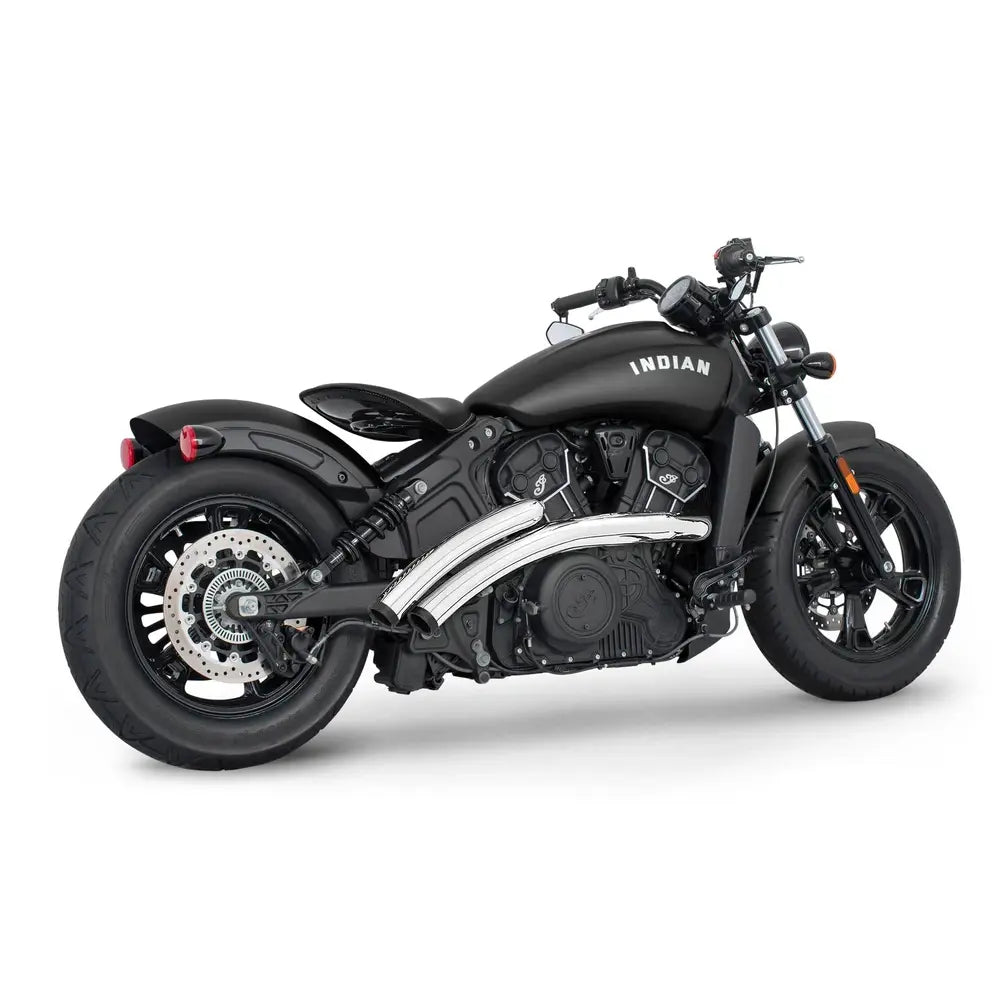 Låt din Indian-motorcykel vråla med Radical Radius avgassystemet. Radical Radius-avgassystemen kommer med kraftiga värmesköldar, 2 1/2" (64 mm) ytterdiameter som täcker grenrören i hela 220 grader samt trestegade grenrör för högsta ökningar av både hästkrafter och vridmoment.