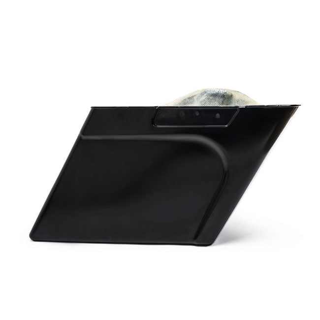 4" stretchade sidoväskor från Killer Custom som ger hojen ett sänkt customutseende och extra packutrymme. Väskorna är direkt ersättning för originalsidoväskor och tillverkade i handupplagd, omålad gelcoatad glasfiber som är stark, formstabil och lätt.