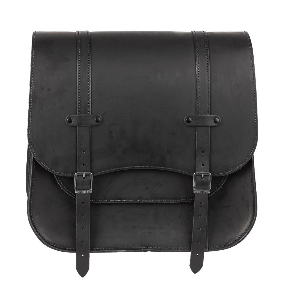 En klassisk sidoväska i skinn från Ledrie med en volym på 30 liter. Den är handgjord i specialbehandlat läder som är slitstarkt och vattenavvisande, och stängs med spännen i traditionell design. Väskan har förstärkt baksida för enkel montering och lång hållbarhet.