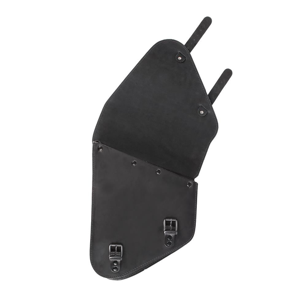 Svingarmsväska i läder från Ledrie som monteras snyggt på vänster sida av motorcykeln. Ger plats för det viktigaste samtidigt som den förstärker hojens stil.