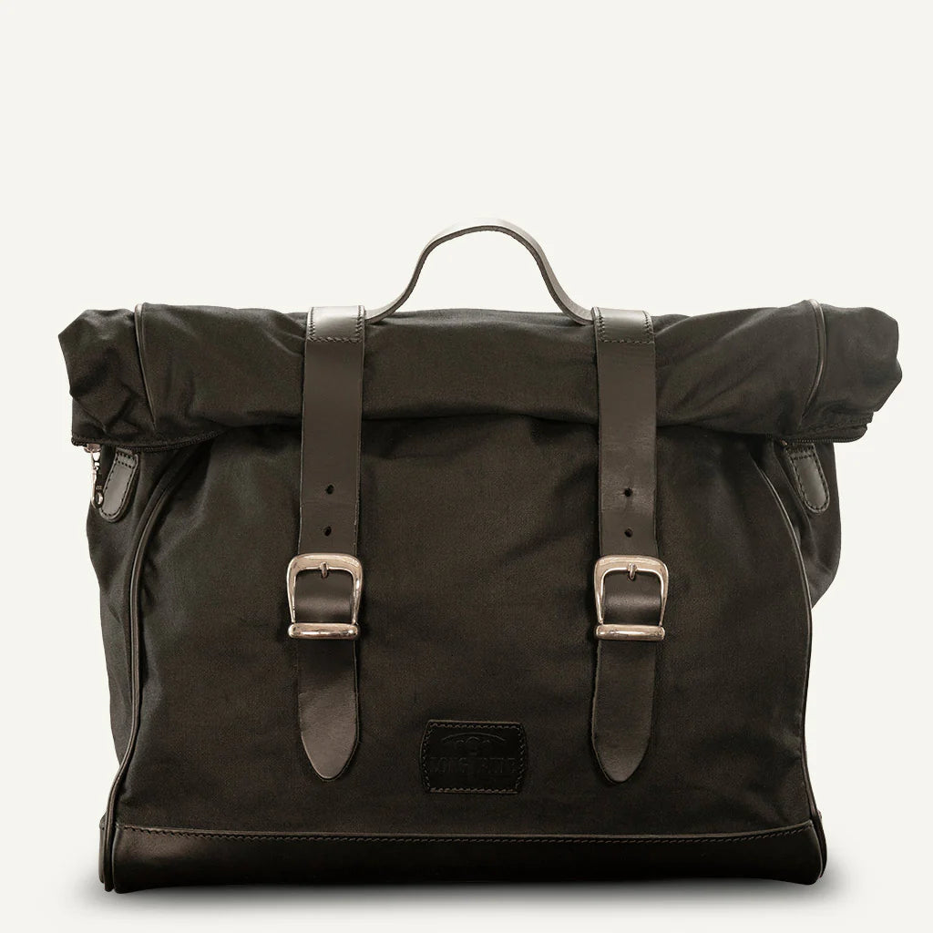 Super Patriot Roll Top Click-On är en vintageinspirerad sidoväska med design hämtad från arméns väskor under andra världskriget. Handgjord i fransk 22 oz vaxad canvas av högsta kvalitet och vegetabilgarvat läder från Belgien. En tålig väska som kombinerar klassiskt militärstuk med modern funktionalitet.