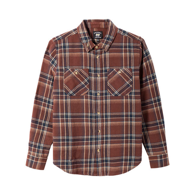 En flanellskjorta med attityd. Charlie-skjortan från Loser Machine och Mooneyes kombinerar mjuk bomull med genomtänkta detaljer som sköldpaddsknappar och "Good Luck"-nålen.