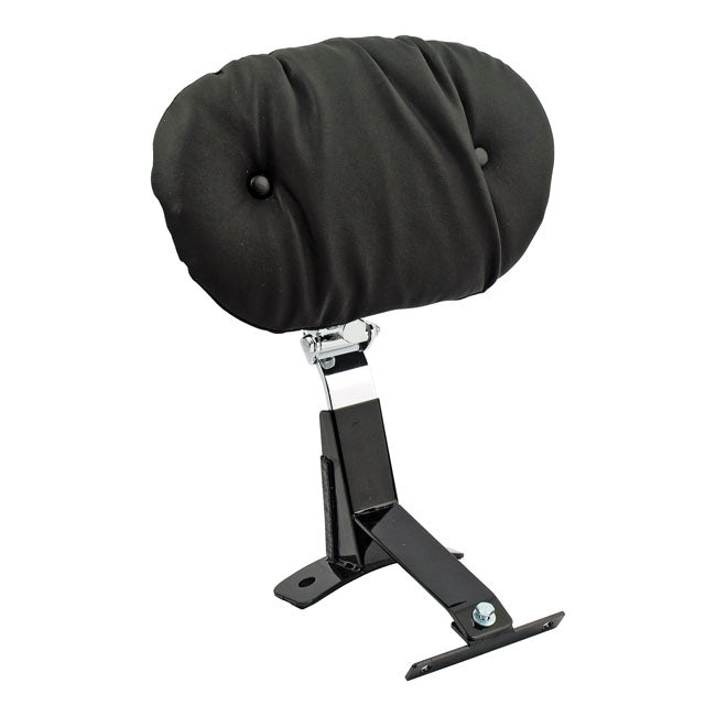 Med detta kit kan du montera ett förarryggstöd på en 2-up Touring-sadel, oavsett om du kör med Mustang eller original. Det rammonterade fästet ger en stabil och trygg montering, och när allt är på plats kan ryggstödet justeras efter din rygg. Det sätts i och tas ur utan verktyg och kan fällas plant när det inte används.