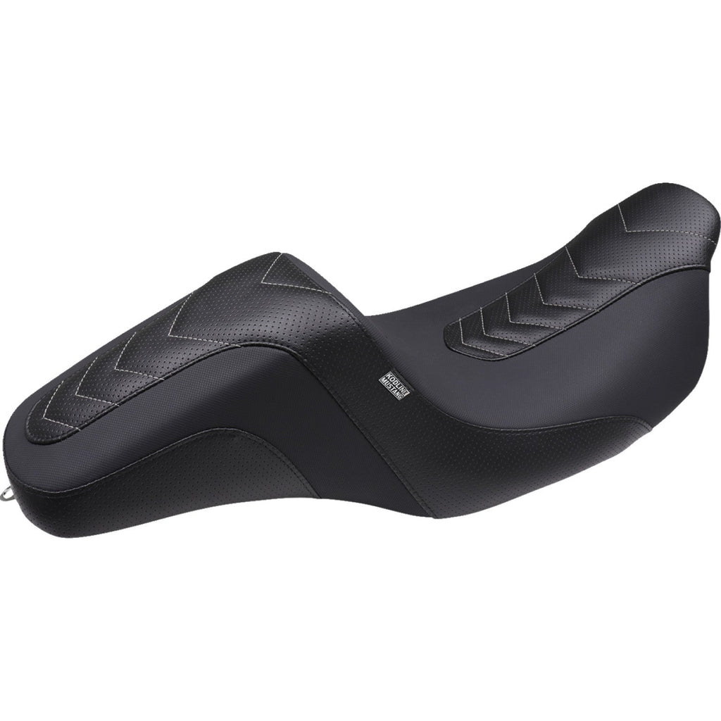 Squareback av Kodlin blandar Len Kodlins tuffa design med Mustangs välkända komfort och kvalitet. Den bygger på en beprövad modell men med en ny, sportigare stil. De olika materialen och de sydda detaljerna ger sadeln ett tydligt custom-utseende, samtidigt som formen ser till att du sitter stadigt när du gasar på.