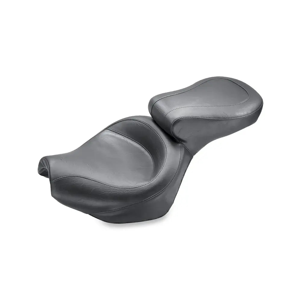 Standard Touring 2-Up från Mustang ger föraren en rejäl uppgradering i komfort utan att ändra hojens naturliga körkänsla. Den djupt formade förardelen håller dig stabil och bekvämt på plats, medan passagerarsadeln sträcker sig framåt och fungerar som ett inbyggt ryggstöd. Båda sitsarna är utformade för långfärdskomfort och bygger på en stadig glasfiberbas som ger en säker och hållbar passform.