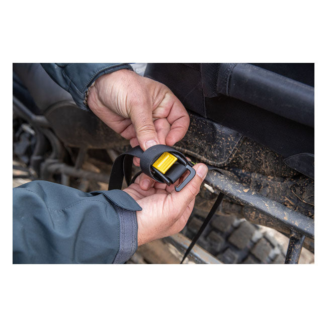 Nelson Rigg Rigg-Strap remsats är en stark och flexibel lösning för att säkra packning på motorcykeln. Med det patenterade cam-hook-systemet i aluminium och slitstarka remmar får du flera monteringsmöjligheter. Remmarna är justerbara, enkla att använda och tillförlitliga även vid tung last.