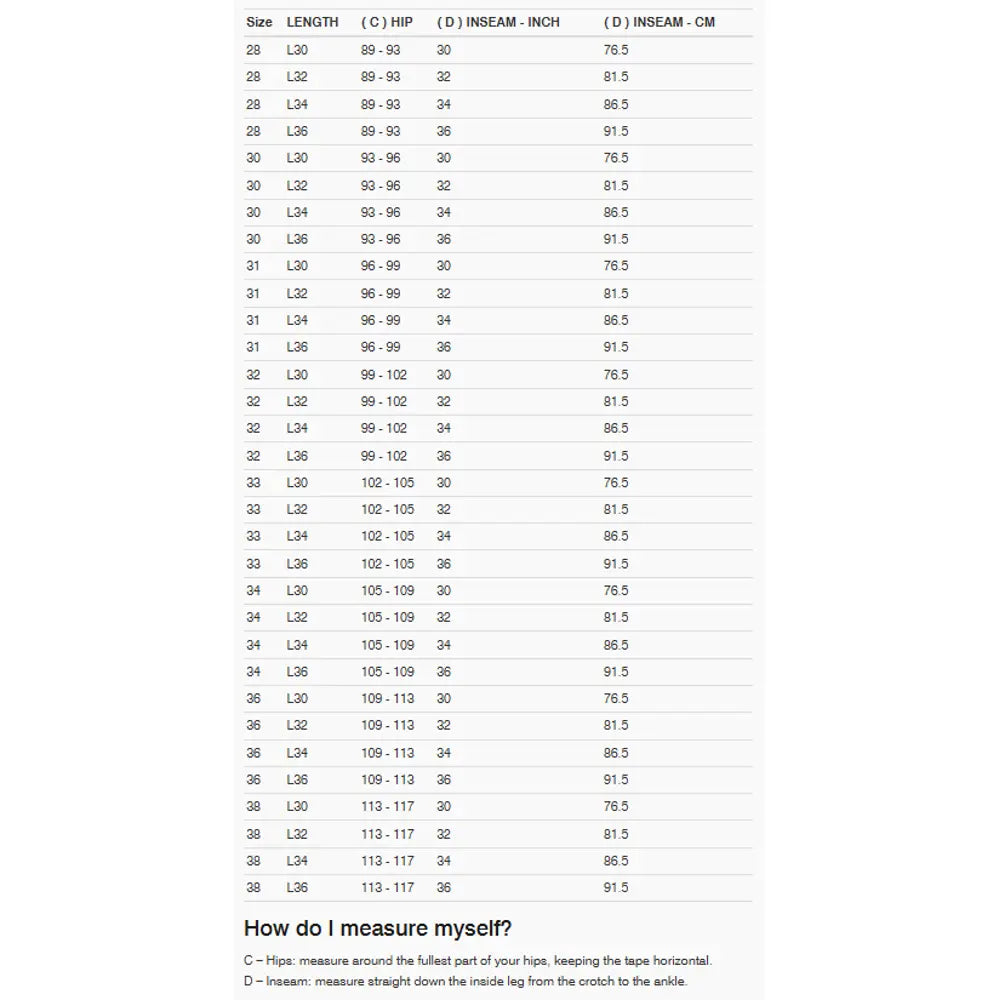 - Tapered passform: avslappnad i midjan/låret, smalnar av vid foten
