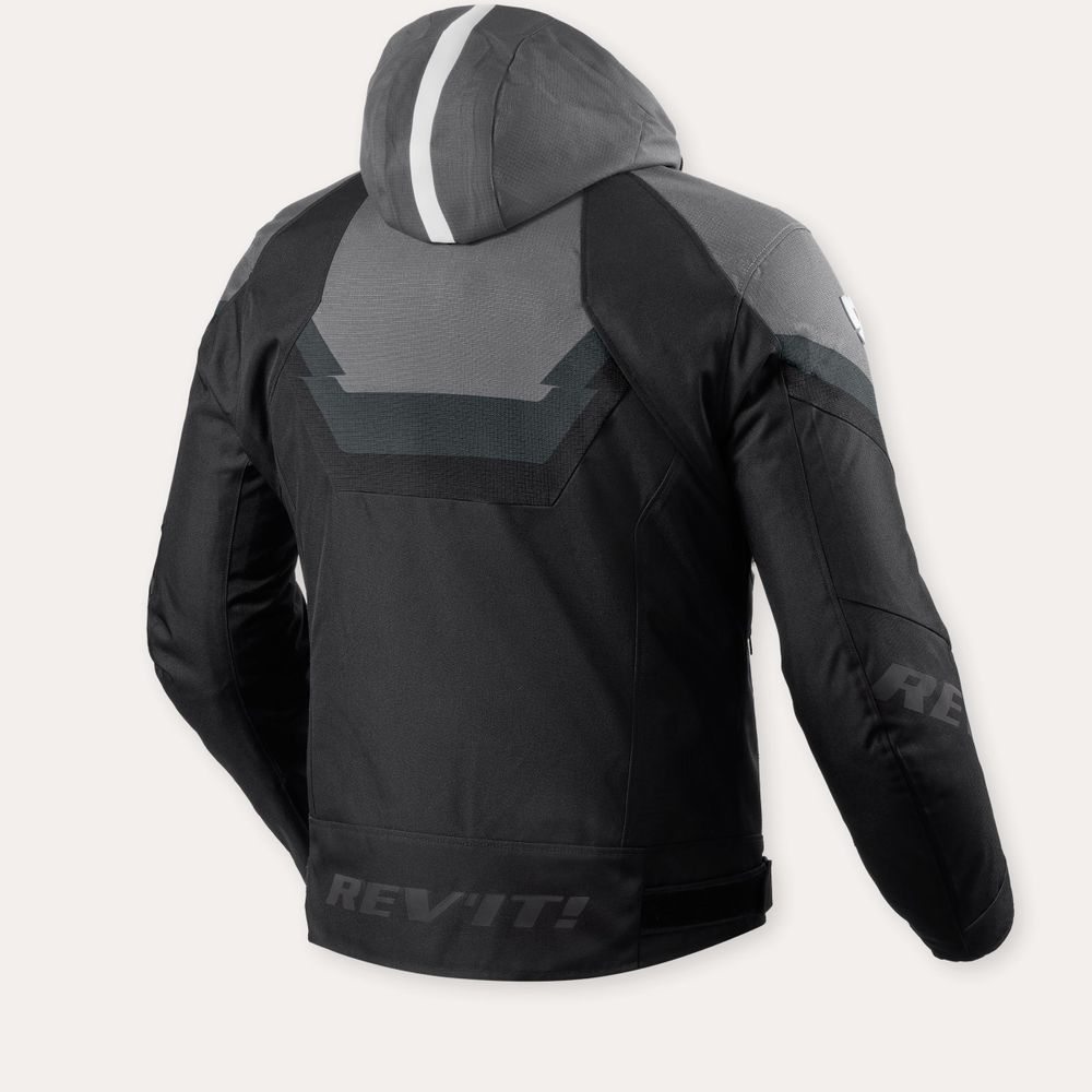 The REV'IT! Quantum 3 H2O jackan förenar djärv sportstyling med vardaglig funktion. Den här vattentäta jackan är inspirerad av den grafiska energin i Quantum 3-serien och har en smal, atletisk passform och är byggd för att du ska kunna köra bekvämt i oförutsägbart väder. Det integrerade hydratex|Mesh G-fodret håller regnet ute, medan det avtagbara termofodret ger värme när det behövs. Med en avtagbar huva och smarta justeringsmöjligheter kan den här jackan enkelt övergå från motorcykeljacka till vardagsjacka.