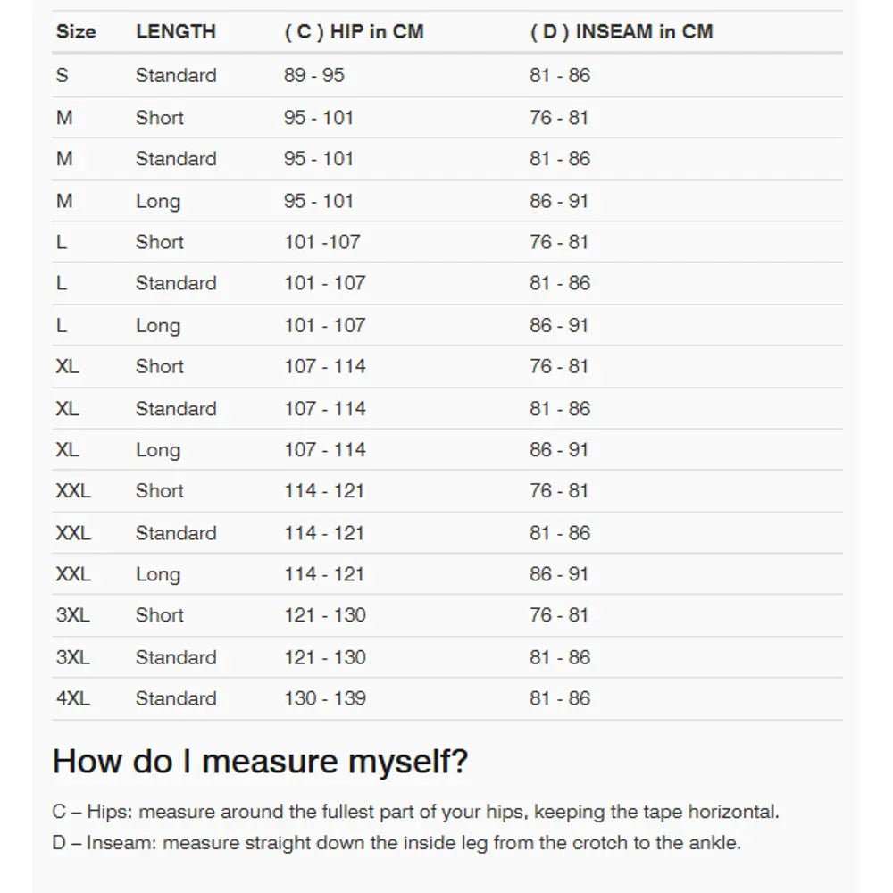 - Två stora förvaringsfickor med V-flikar på övre delen av benen
