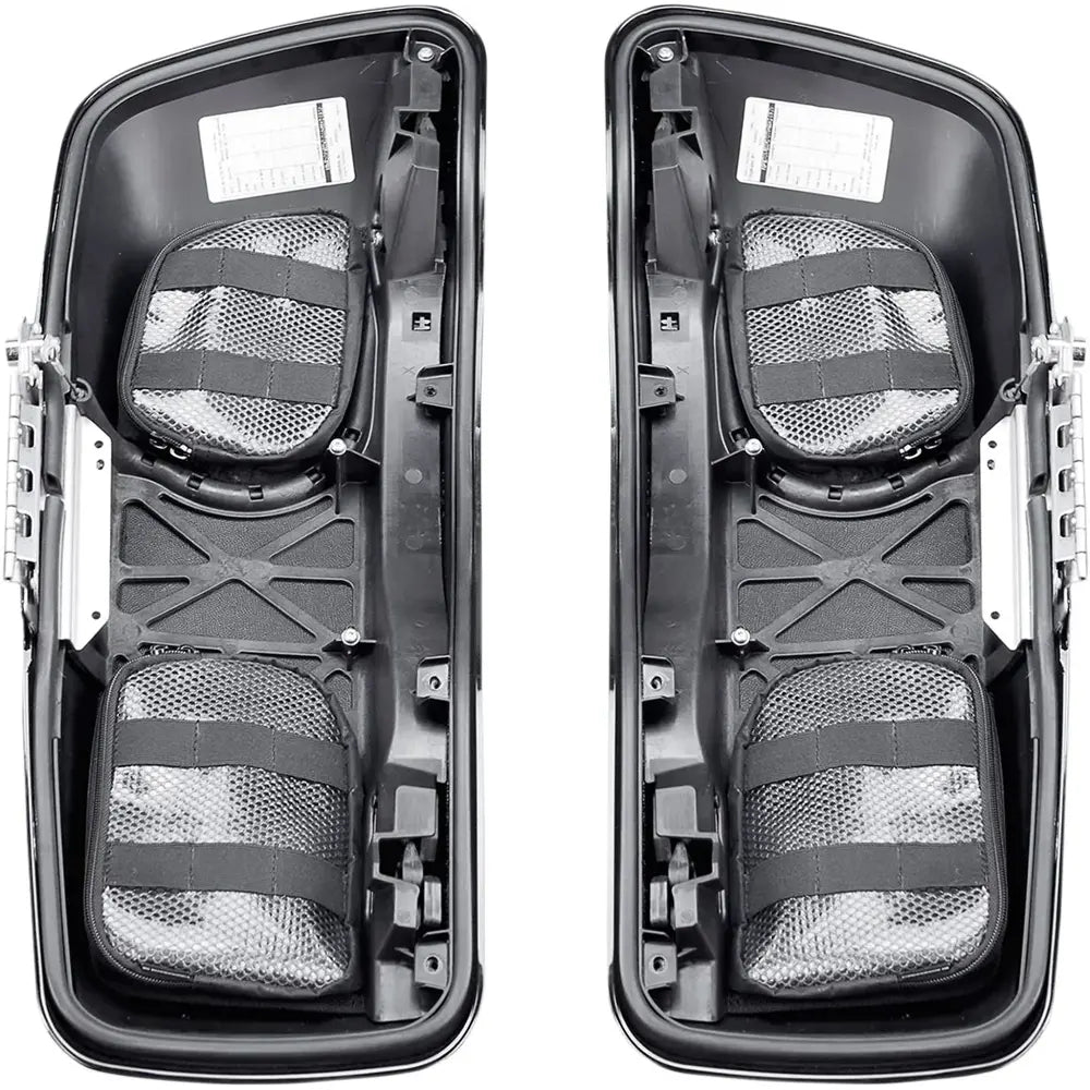 Det här organizersetet förvandlar insidan av locken på dina Harley-Davidson-sidoväskor till praktisk och lättåtkomlig förvaring. Panelerna monteras direkt i väsklocken och ger flera fack som håller ordning på mindre prylar så att de inte försvinner ner i botten på väskan. Installationen är snabb och enkel, perfekt för dig som vill få bättre struktur inför både långresor och vardagskörning.