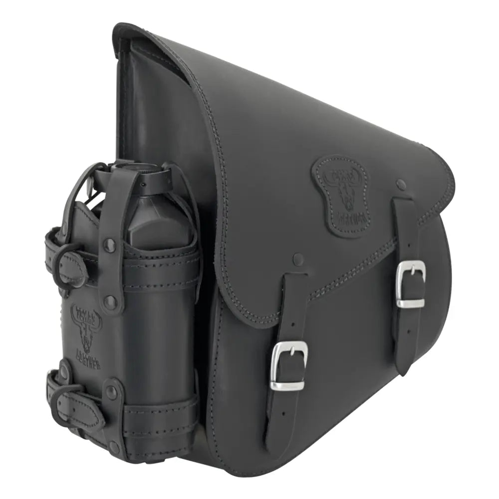Texas Leather oljeflaskhållaren passar de flesta rektangulära 1L oljeflaskor för enkel fastsättning på din motorcykel. Tillverkad av äkta läder.