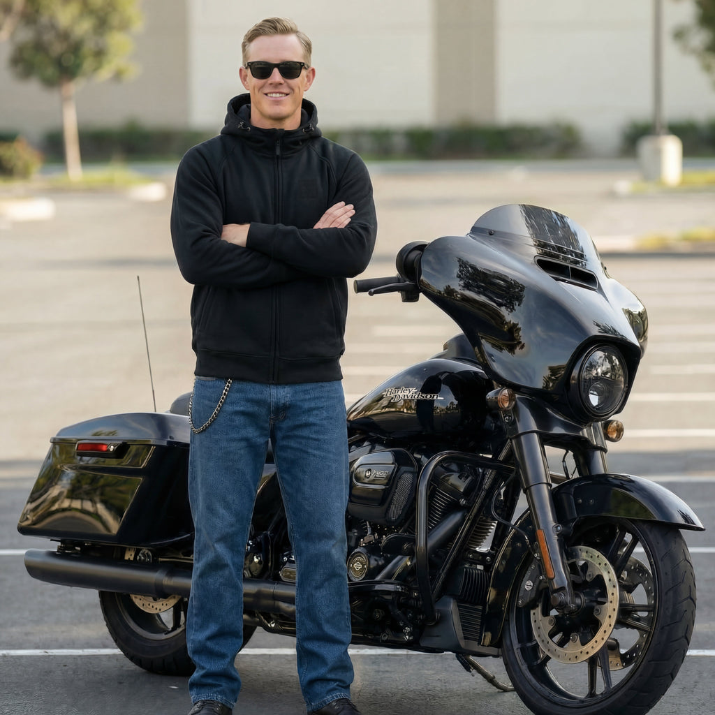 Kör säkert, bekvämt och med stil i THNDR Blackout II Kevlarhoodie.