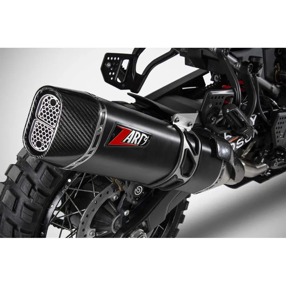 Zard EC Euro 5 Approved Pan Am Slip-On Ljuddämparen är en perfekt blandning av hög prestanda, hållbarhet och vacker design, speciellt framtagen för Harley-Davidson Pan America. Tillverkad av AISI 304 rostfritt stål med en värmebeständig matt svart Cerakote keramisk beläggning. Slutstycket och hälskyddet i kolfiber ger ett sportigt utseende. Ljuddämparen är Euro 5-godkänd och ger en prestandaökning på +1,2 hk samtidigt som ljudnivåerna hålls inom lagliga gränser, vilket gör den till en utmärkt uppgradering för entusiaster som vill ha en väglaglig och enkel installation.